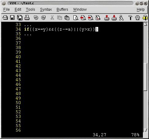 Checking the above code will involve checking the correctness of the parenthesis. The % can be used to jump from one ( to its corresponding ) and vice versa. Thus, one can find which opening parenthesis corresponds to which closing parenthesis and use the information to validate the code.