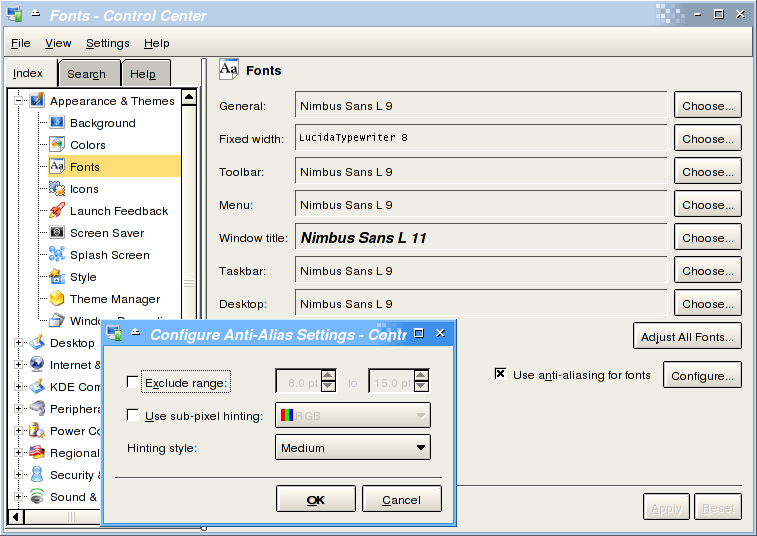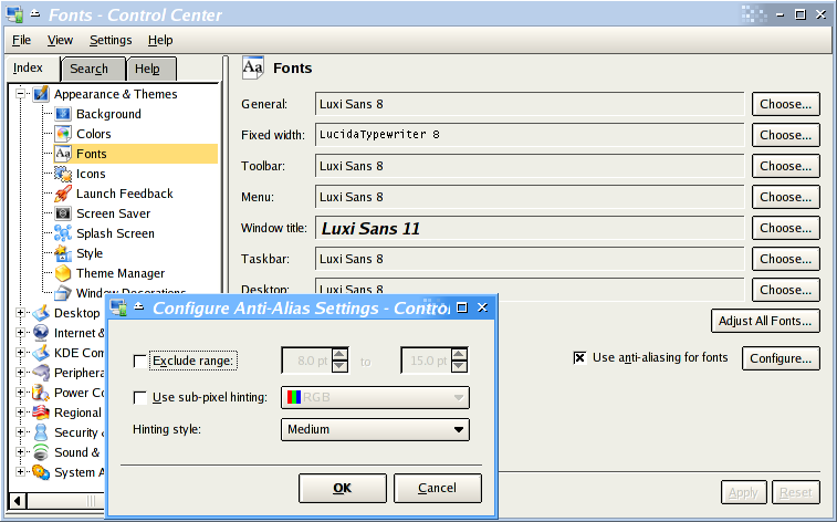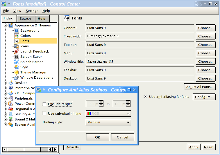 Here are some screen shots about the usage of these fonts on KDE. You should pay attention on how the widgets text on this window are rendered.